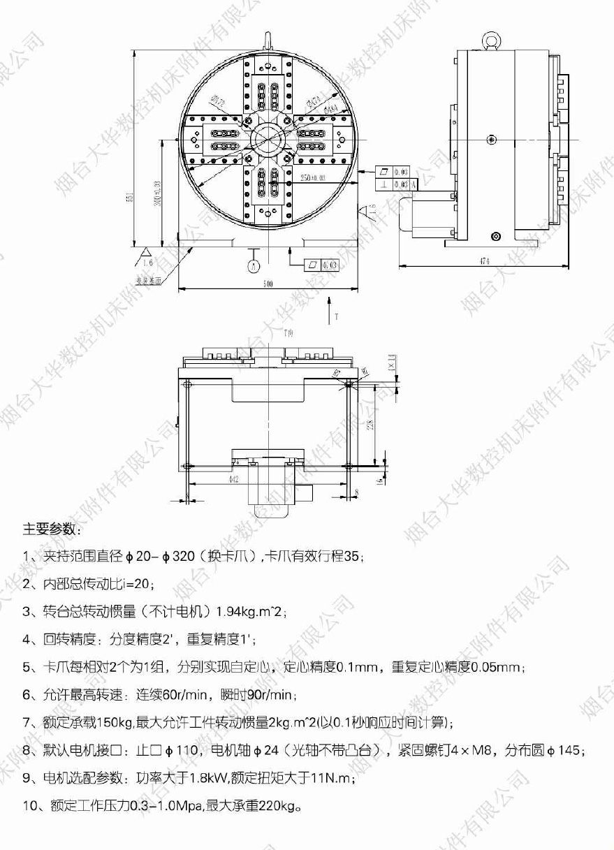 2、轉臺采用高度集成式設計方法,將卡盤、氣動組件、回轉支承、分度機構、減速機構