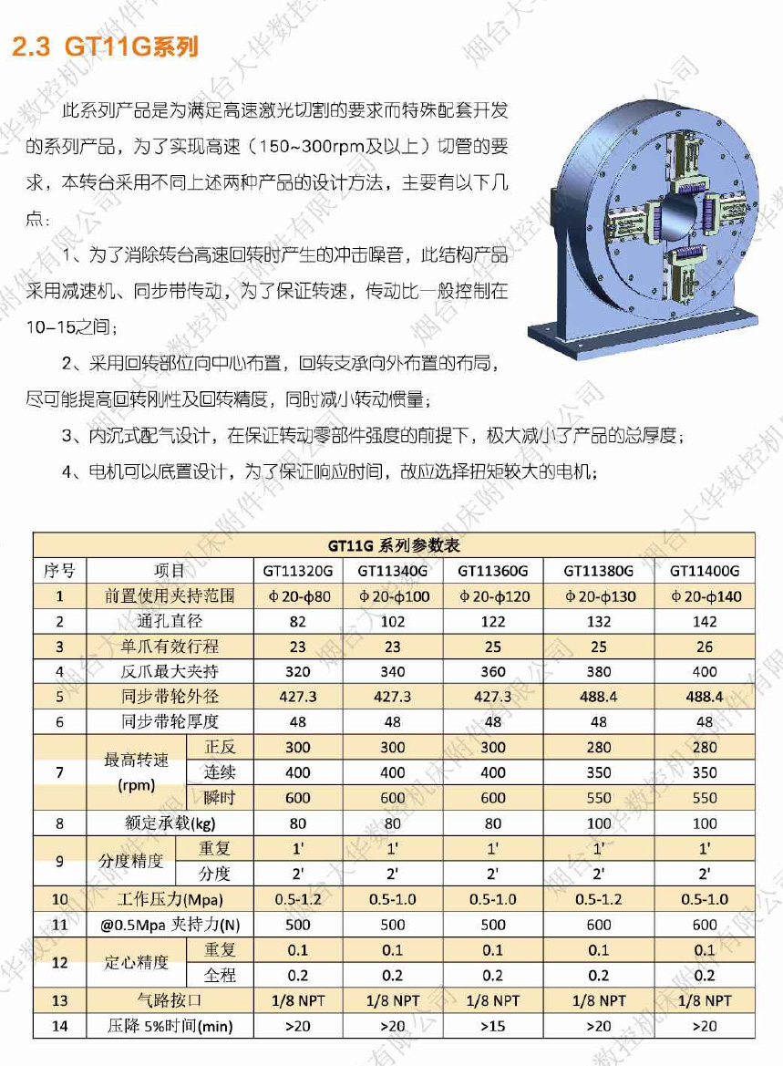 此產品為后置激光管切割轉臺,通配160、220及320型前置大通孔轉臺,此轉臺除具備GT11部分優(yōu)點以外,還具有以下特點:
