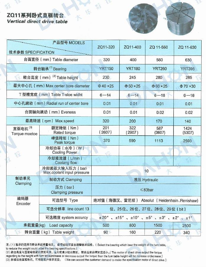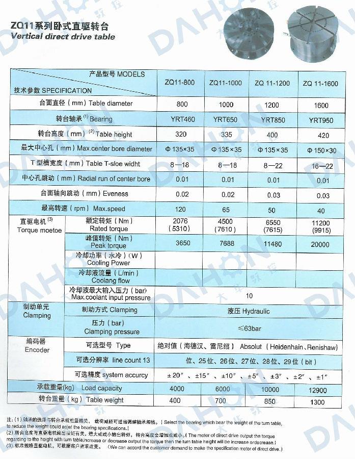 • 產品名稱: ZQ11系列臥式直驅轉臺(分站)